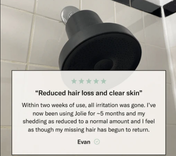 The Jolie Filtered Showerhead is the best product for removing chlorine & heavy metals from your shower water to give you your best skin & hair. Guaranteed.